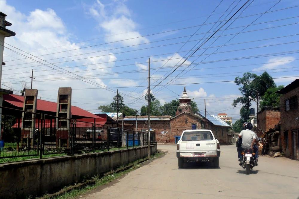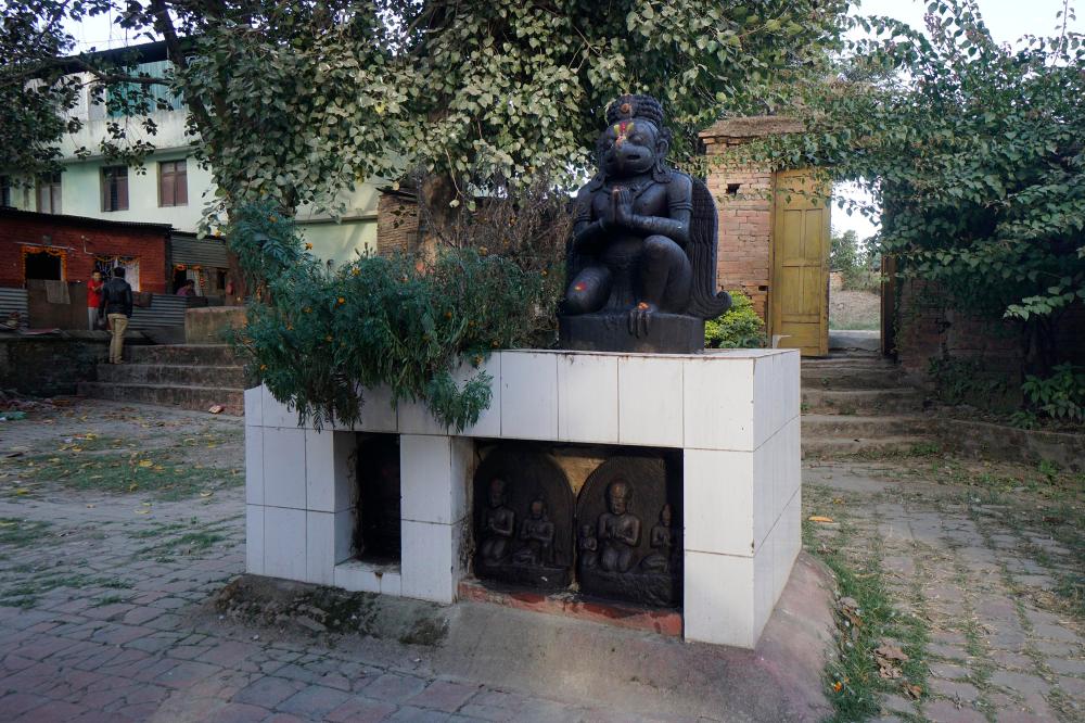 Shikhara Temple with an octagonal porch with wooden pillars. Jagannath a form of Vishnu, the "Lord of the Universe". Partially damaged 2015 by earthquake.
