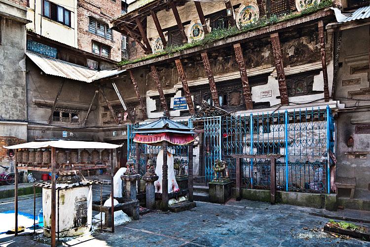 Traditional Newar Buddhist Monastery (Vihara). One of the 18 Main Bahals (Mahavihara) of the Acarya Guthi (nep.) resp. Deacaguthi (new.) in Kathmandu acc. John K. Locke (1985). The Kumari of Kwa Bahal is the Inkarnation of Vajradeva, a Buddhist Goddess. It lies north of the Thahiti Square.