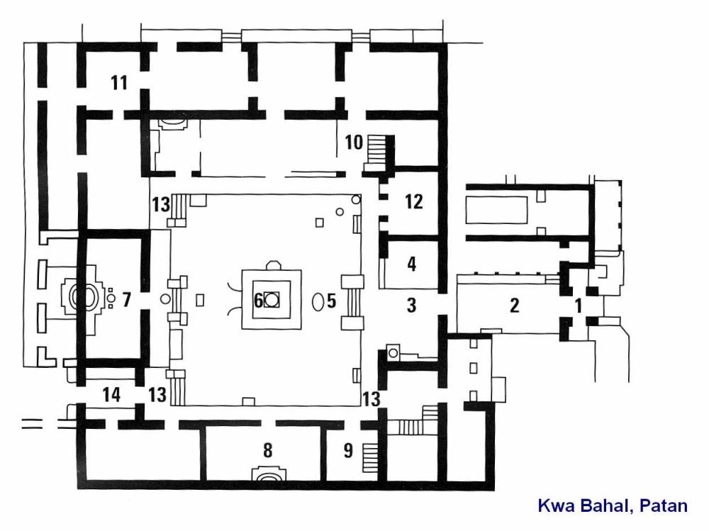 Traditional Newar Buddhist Monastery (Vihara) of Bahal Style. One of the 18 Main Bahals (Mahavihara) of Patan acc. John K. Locke (1985) and one of the 50 Buddhist Power Places acc. Keith Dowman. Kwa Bahal is the most famous Bahal of Patan with the largest and most active Sangha.