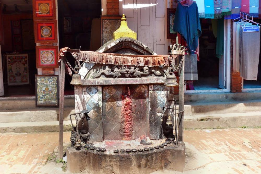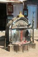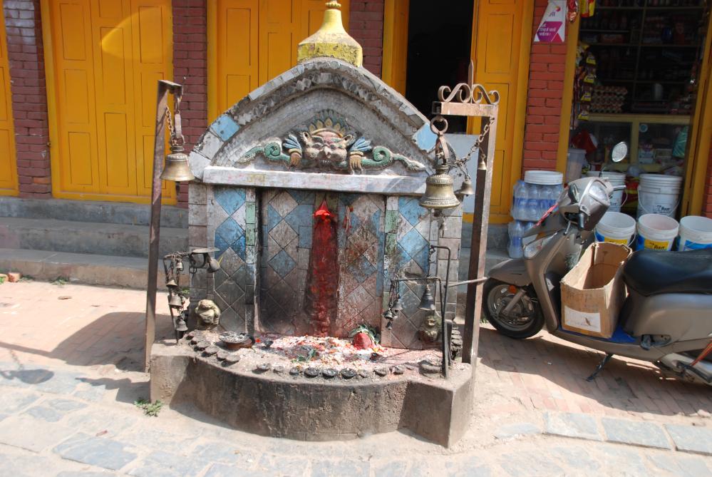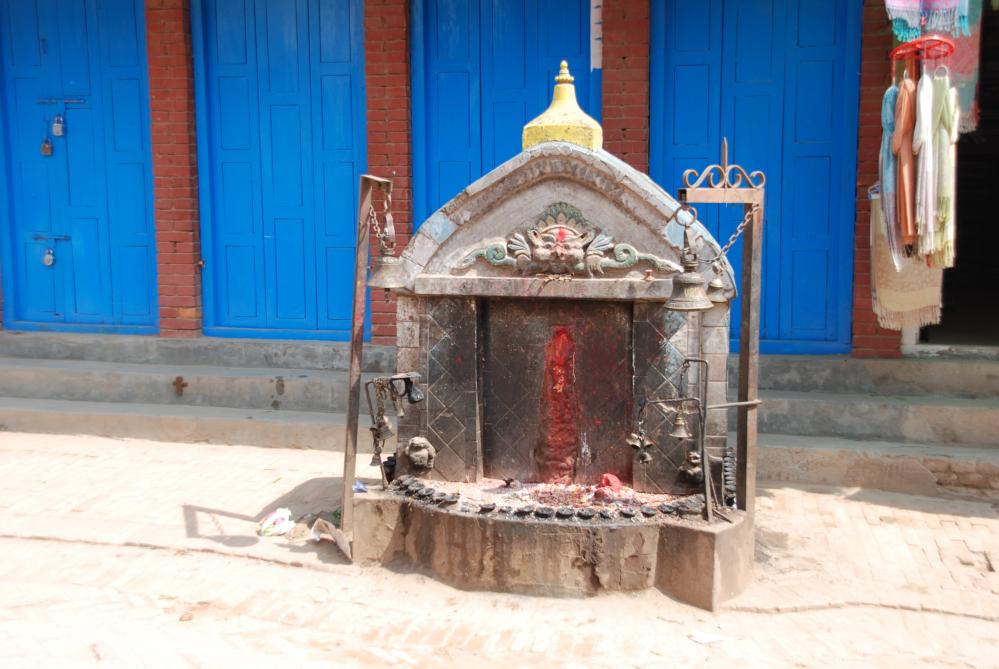 Roadside Shrine of Manokamana, the Wish-Fulfilling God.In the upper part of the shrine is a Snake Eating Chhepu.